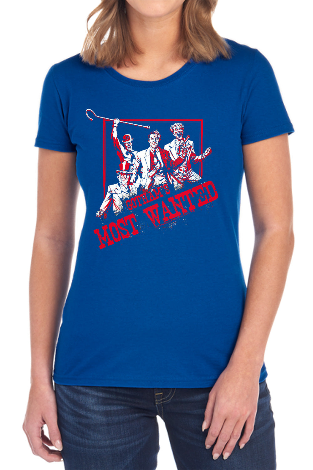 - BATMAN GOTHAMS MOST WANTED WOMEN'S REGULAR FIT T-SHIRT IN BLACK COLORWAY with a timeless design that makes a true fan statement.