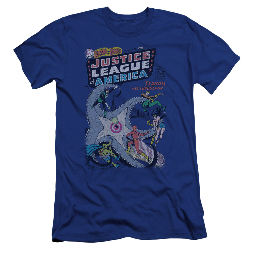 - DC NO 28 MEN'S PREMIUM SLIM FIT T-SHIRT IN ROYAL COLORWAY with a timeless design that makes a true fan statement.