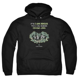 DUNGEONS AND DRAGONS DANGEROUS TO GO ALONE ADULT UNISEX HEATHER PULLOVER HOODIE IN BLACK COLORWAY