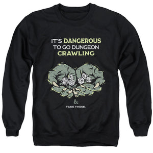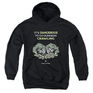 - DUNGEONS AND DRAGONS DANGEROUS TO GO ALONE ADULT UNISEX HEATHER PULLOVER HOODIE IN BLACK COLORWAY with a timeless design that makes a true fan statement.