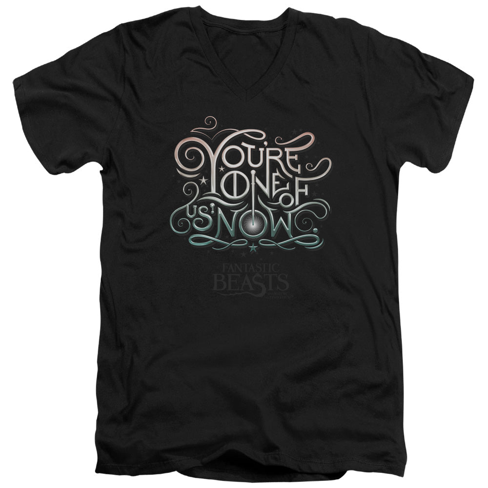 - FANTASTIC BEASTS ONE OF US MEN'S V-NECK T-SHIRT IN BLACK COLORWAY with a timeless design that makes a true fan statement.