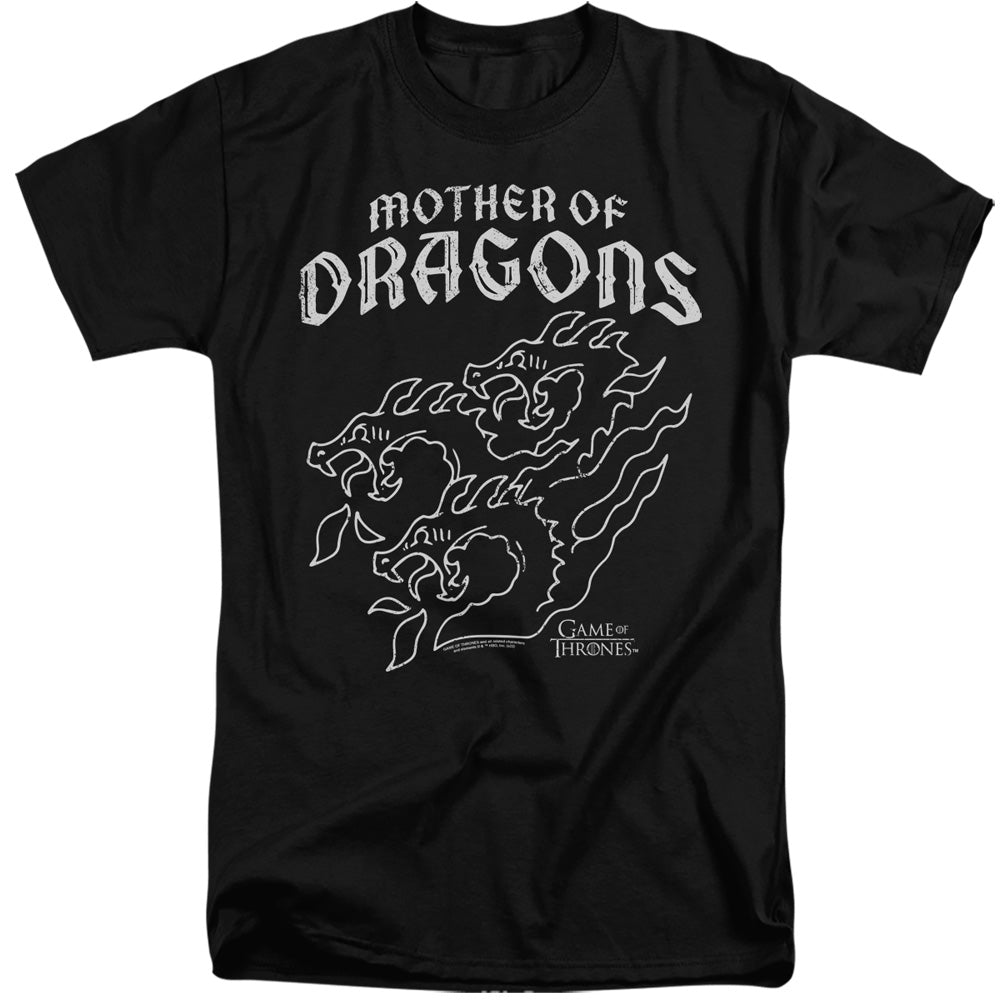 - GAME OF THRONES MOTHER OF DRAGONS MEN'S TALL FIT T-SHIRT IN BLACK COLORWAY with a timeless design that makes a true fan statement.