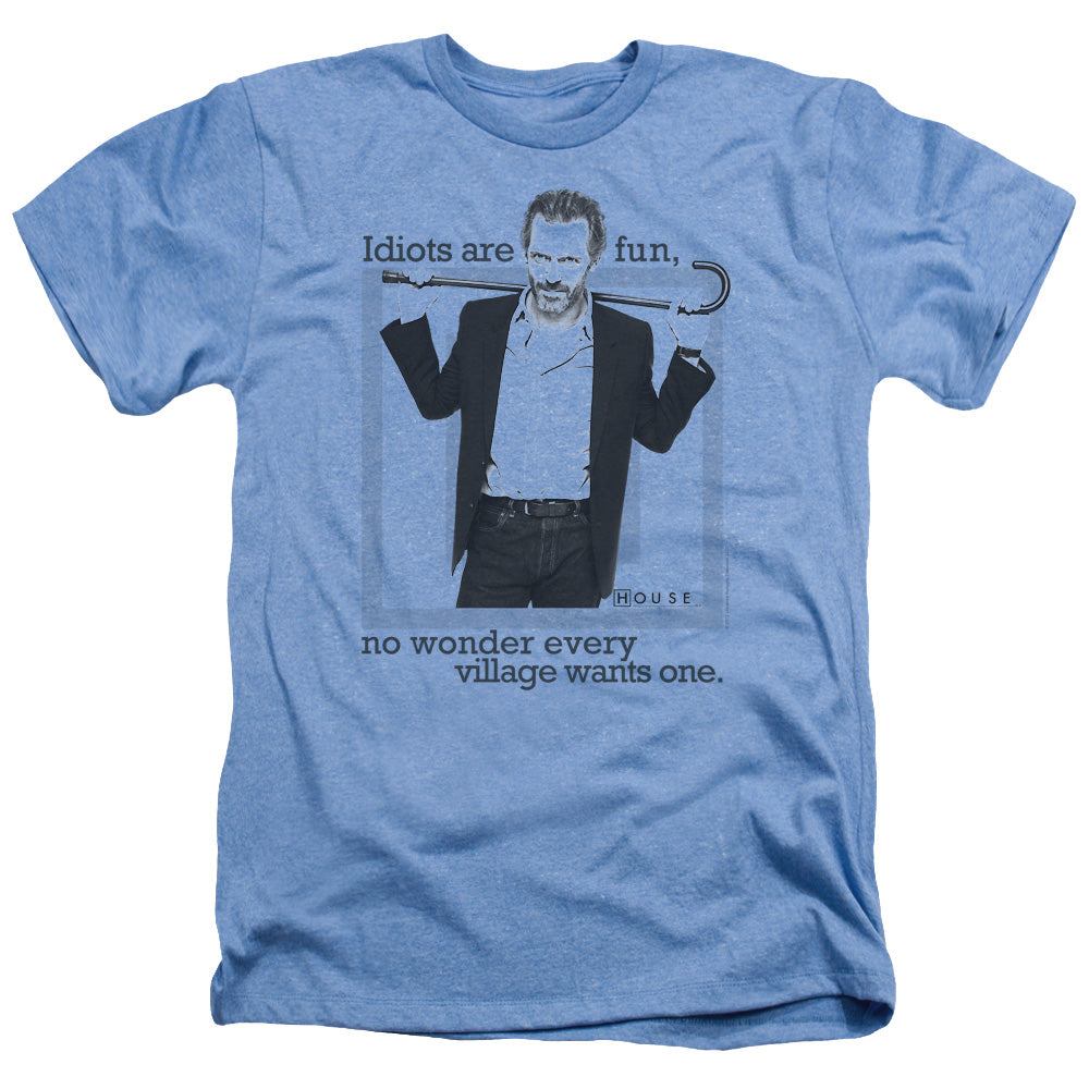 - HOUSE IDIOTS ARE FUN MEN'S HEATHER T-SHIRT IN LIGHT BLUE COLORWAY with a timeless design that makes a true fan statement.