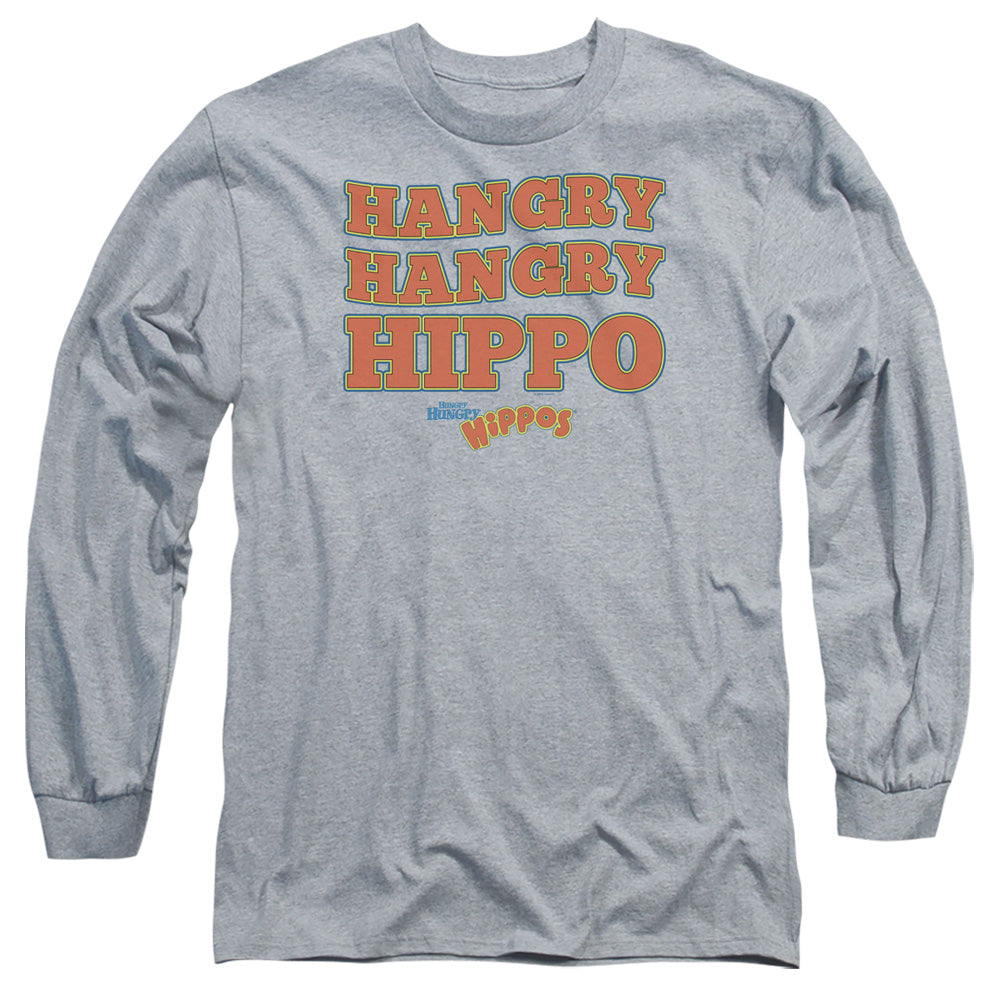 - HUNGRY HUNGRY HIPPOS HANGRY MEN'S LONG SLEEVE T-SHIRT IN ATHLETIC HEATHER COLORWAY with a timeless design that makes a true fan statement.