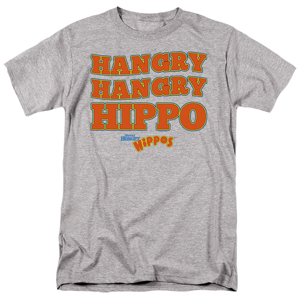 - HUNGRY HUNGRY HIPPOS HANGRY MEN'S REGULAR FIT T-SHIRT IN ATHLETIC HEATHER COLORWAY with a timeless design that makes a true fan statement.