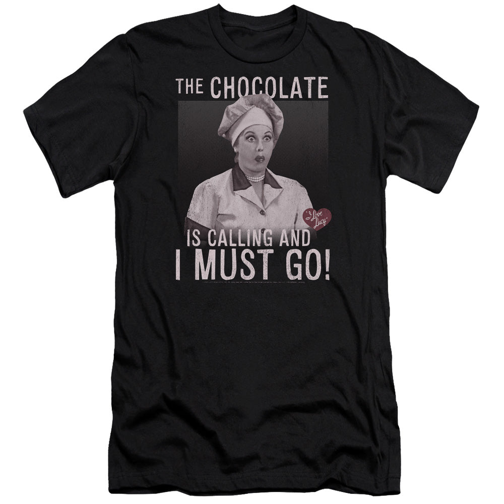 I LOVE LUCY CHOCOLATE CALLING MEN'S PREMIUM SLIM FIT T-SHIRT BLACK