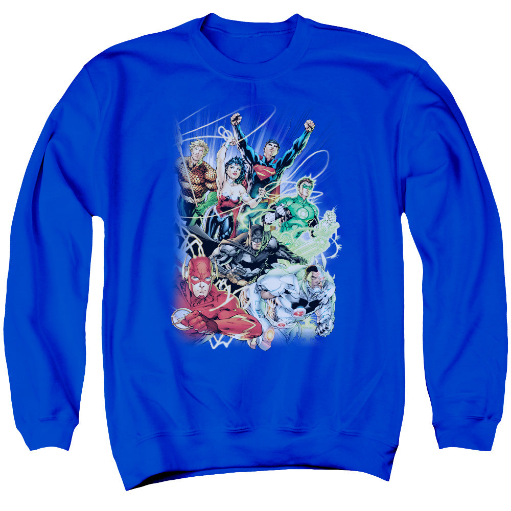 - JLA JUSTICE LEAGUE #1 ADULT UNISEX CREWNECK SWEATSHIRT IN ROYAL COLORWAY with a timeless design that makes a true fan statement.